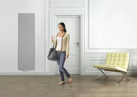 Is een stevige verticale radiator met een vlakke voorkant en gesloten zijwanden.