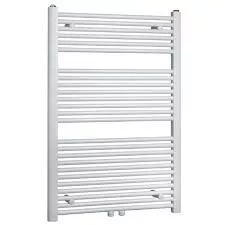 De radiator is samen gesteld uit horizontale buizen van 22 mm en twee verticale collectoren met een D-profiel 40 x 30 mm.