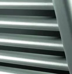 De radiator is samen gesteld uit horizontale buizen van 22 mm en twee verticale collectoren met een D-profiel 40 x 30 mm.
