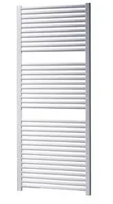De radiator is samen gesteld ui horizontale buizen van 22 mm en twee verticale collectoren met een D-profiel 40 x 30 mm.